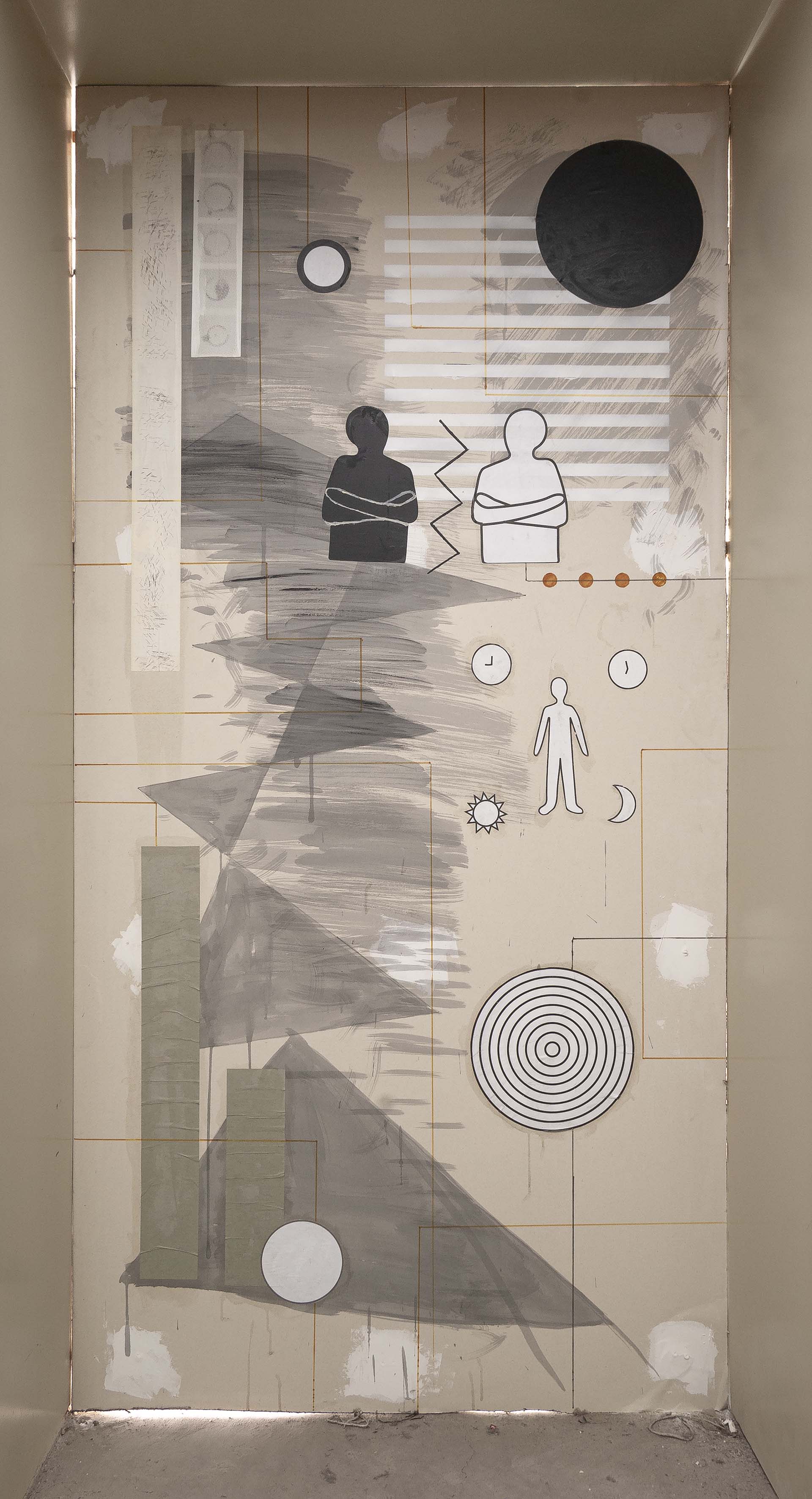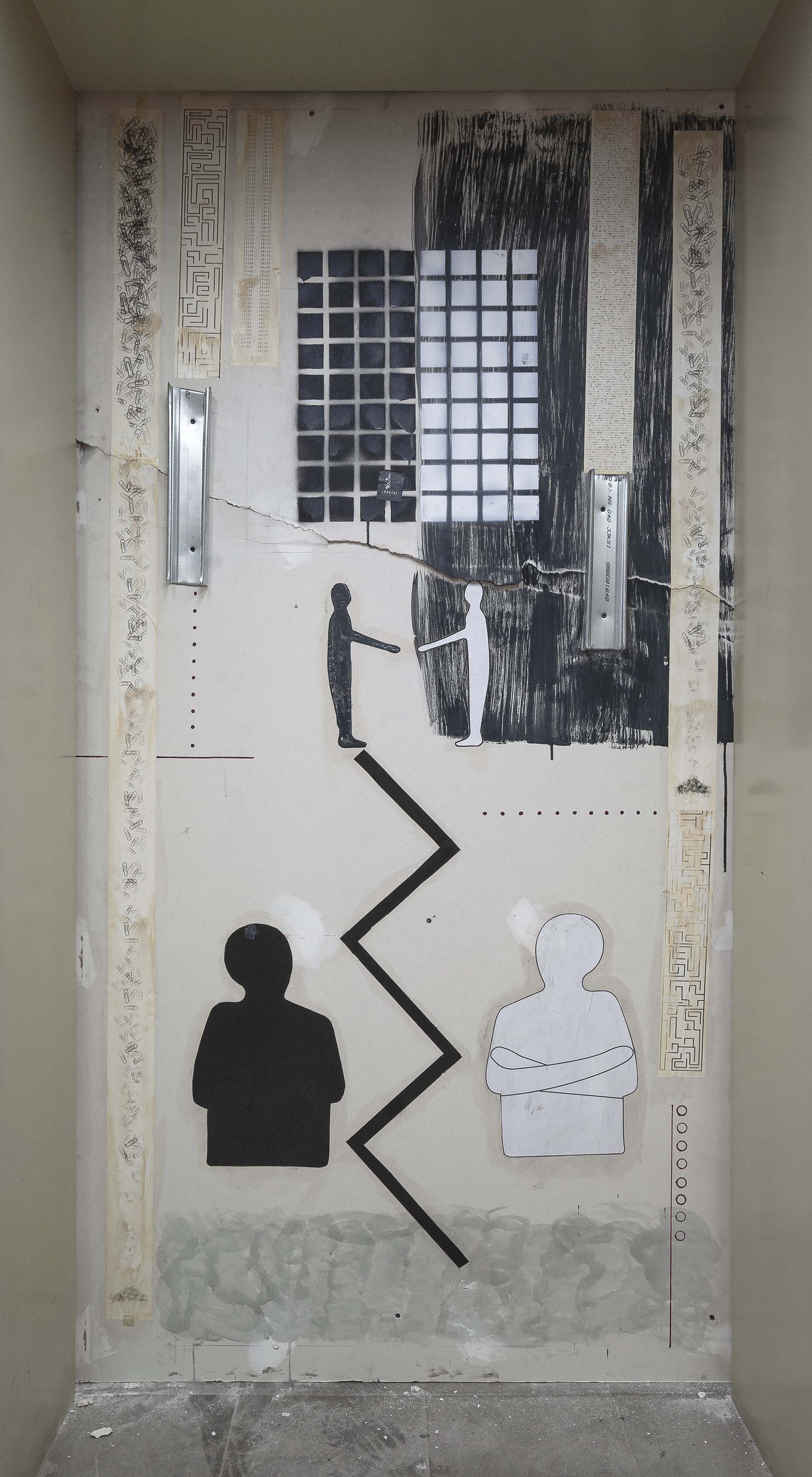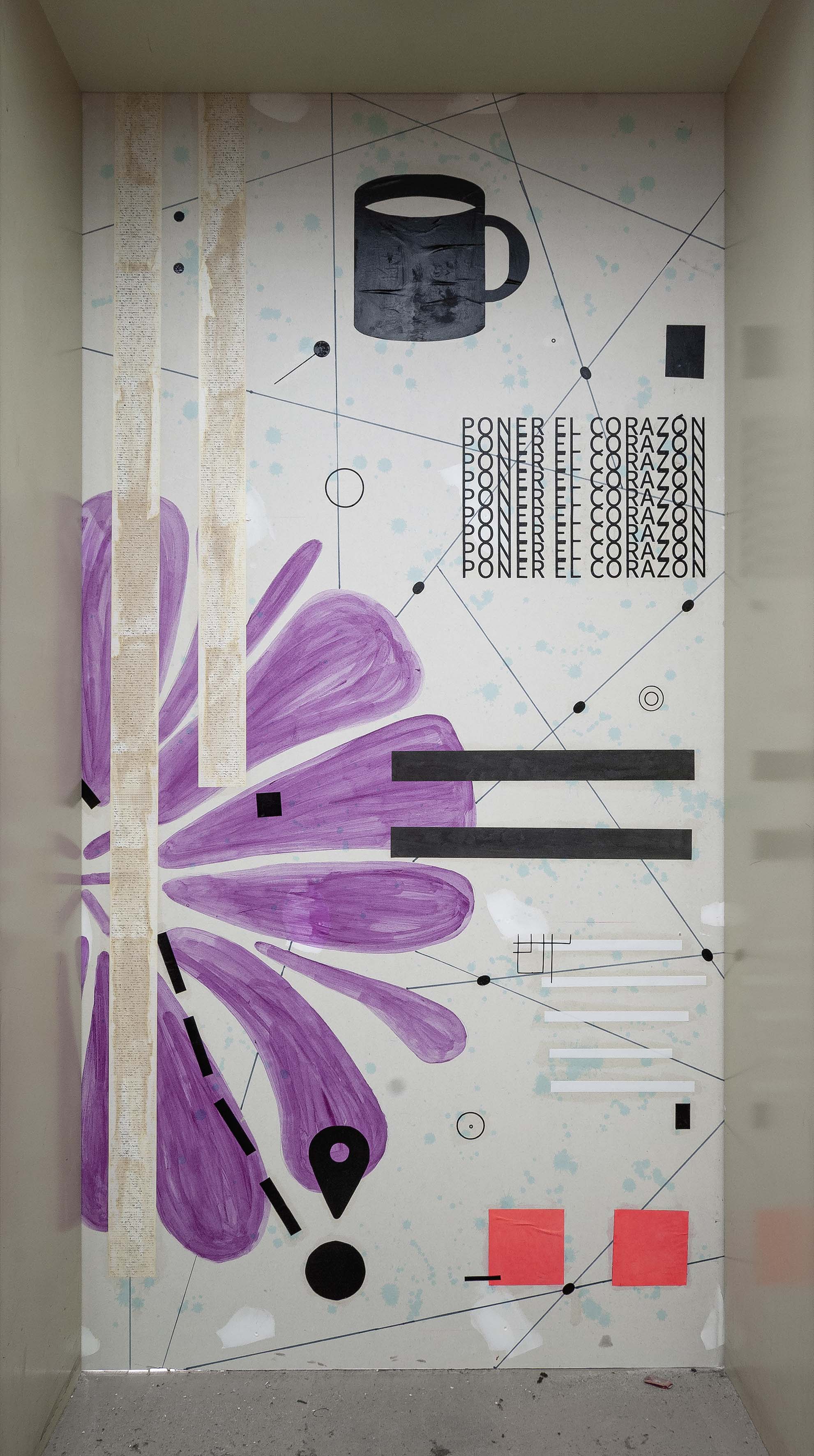 Intervención de tapiales en elevadores de la Torre UNAM Tlatelolco. Hay un total de 24 tapiales intervenidos, 4 piezas por cada piso vacío que son el 1°, 2°, 14°, 15°, 17°, 18°. Estos collages fueron realizados a partir de las experiencias compartidas de trabajadores de la Torre.